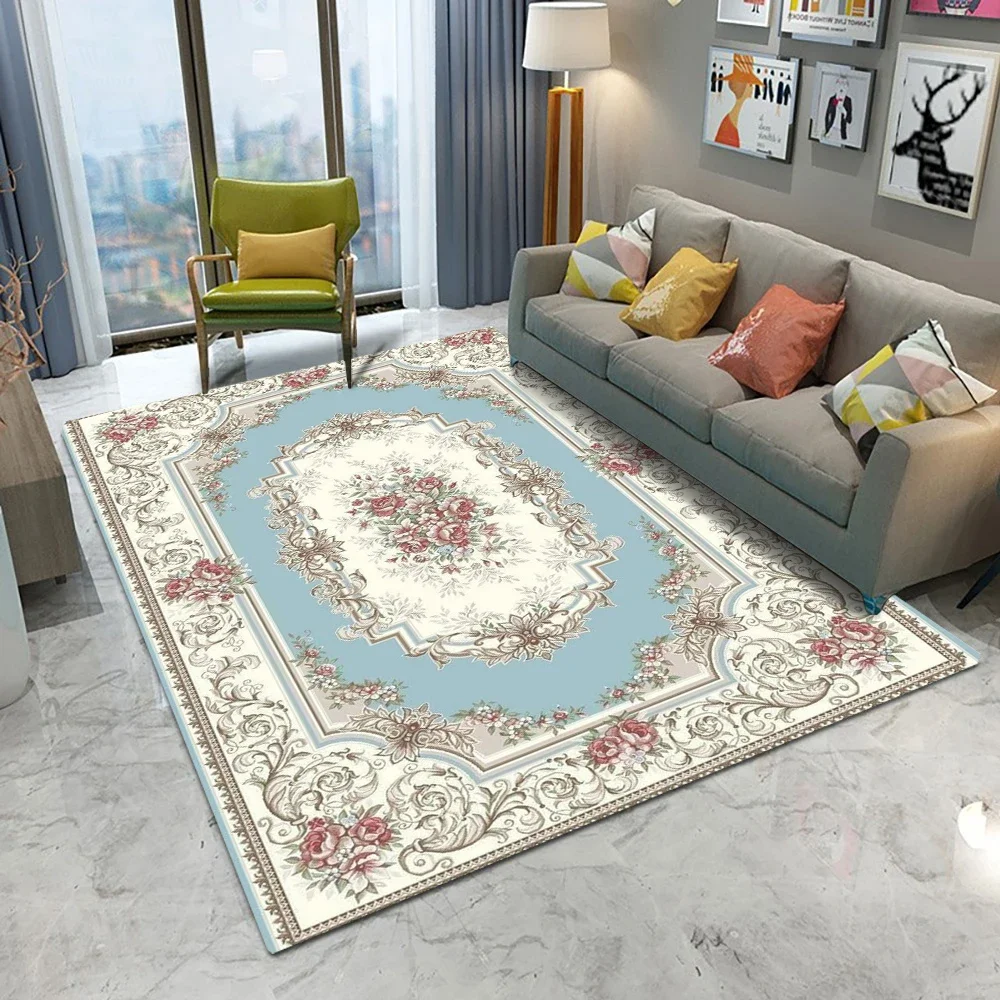 Vintage Rustic Carpet Shabby Rose Rugs Luxury Soft Elegant Traditional Rugs Floral Floor Carpet Home Living Room Bedroom Mats